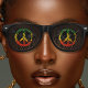 Jamaica retro party sunglasses with a Jamaican Rasta colour peace sign symbol. Green, red, and gold colour scheme. Great for loves of island / Caribbean culture.