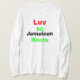 I love this shirt. I had written to the artist asking her if this picture was available on a shirt, and she wrote me back telling me where I could find the shirt. These shirts can be custom made to have a different saying. I loved this saying and went with it. The artist wrote me back later to tell me that she had seen my order go through. How's that for service? Pretty special. It's just as displayed. Perfect!
