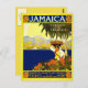 A beautiful vintage style postcard advertising Jamaica. The picture is on a bright yellow background, which makes it very eye catching.