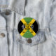 Jamaican Coat of Arms Button. Out of Many One People design at Rastagearshop.