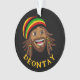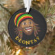 Black Christmas tree ornament featuring a happy Rastafarian man. The text on the front is customisable, so you can add a name or message.