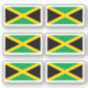 Six Custom-cut vinyl stickers with the flag of Jamaica; a red and green flag with a yellow cross