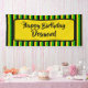 Jamaican Happy birthday party banner with Jamaica flag coloured stripes in black, yellow and green. The text on top is totally customisable so the banner can be used for any party celebration