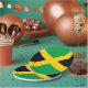 The flag of Jamaica in the Pan-African colours of yellow, black, and green. Green for the land, black for the strength of the people, and yellow for the sun.