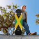The flag of Jamaica in the Pan-African colours of yellow, black, and green. Green for the land, black for the strength of the people, and yellow for the sun.