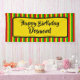Jamaican rastafari Happy birthday party banner with rasta flag coloured stripes in red, yellow and green. The text on top is totally customisable so the banner can be used for any party celebration