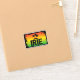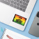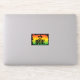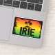 Jamaican rastafarian IRIE sticker with a rasta flag coloured sunset and silhouette palm trees
