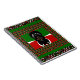 This artwork features a central design element that incorporates the colours of the Kenyan flag, highlighted by a circular emblem displaying the text "Jambo Kenya." This central feature is framed by a decorative border, which showcases a repeating pattern of small hearts and geometric shapes, creating a balanced and visually dynamic composition.