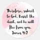 James 4:7 Bible verse with a pink and white background, spotted with gold dots!