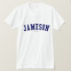 Jameson! Is your name Jameson? Or do you have a husband, boyfriend, male family member or male friend named Jameson? If so, this "Banner" shirt is exactly the gift that you're looking for! The design features "Jameson" in arched navy lettering across the chest in the classic College font.