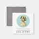 Jane Austen portrait and quote about books and reading in blue, gold and brown: