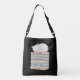 It's very roomy. The fabric is soft and flexible, and the strap is wide and adjustable to fit across the body. The printing is true to the photo.