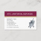 Janitorial service business card template with professional design that includes white background colour you can customise, text and layout you can personalise, along with image of a wringer mop pail. Designed as a business card template for a janitorial service, janitorial supplies, or commercial cleaning services.