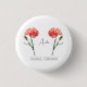 The birth month flower January Carnation button features a beautiful illustration of a carnation flower. Below the flower, there's a customisable name written in elegant script font. Underneath the name, it says "January - Carnation", indicating that her birth flower is the carnation. It's a lovely personalised button, a thoughtful gift for someone born in January.