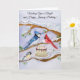 This hand-painted watercolor features a trio of favorite backyard birds a Blue Jay, Cardinal, and Black-Capped Chickadee gathered around a vanilla and chocolate birthday cake topped with glowing candles. It’s the perfect birthday card for someone who loves nature, birds, and beautifully illustrated art.