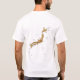 An editable title and slogan accompanies the red circle centred on a white background of the Japanese flag on the front of this t-shirt. The back displays a detailed map of Japan.