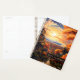 This planner features a vibrant illustration of a stone walkway in a Japanese city in autumn. Bright orange and umber trees line the walkway, which winds down a steep hill. In the distance is the sun hanging in the sky over a blue-grey mountain range. The design is the same on the front and back covers. Personalise the front with the current year.