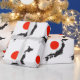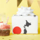 Japan map silhouette in black with red circle from the Japanese flag on a white background in a pattern.