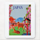 Vintage travel poster for Japan showing deer and a pagoda in the background.