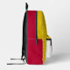 Modern Japanese backpack featuring yellow emblem styling together with colours of Japanese Flag & Japan fashion - love my country, school / university backpack, sports team bag. Stylish travel, holiday backpack for patriots.