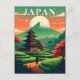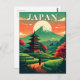 A stunning vintage-style postcard of Japan featuring a traditional pagoda, lush green terraces, and the iconic Mount Fuji at sunset. Perfect for collectors, travelers, and lovers of Japanese culture.