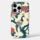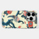 This phone case features a minimalist Japandi style design. The navy blue branches flow across the design and are adorned with vibrant oversized red flowers. A peacock-like bird in shades of navy, red, and cream takes centre stage, adding a harmonious and serene feel to the overall look. The simplicity and natural elements of the design create a calm, understated elegance, typical of Japandi aesthetics.