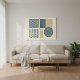 Rendered in a sophisticated palette of deep indigo blue and warm beige, this artwork captures the essence of Wabi Sabi philosophy: finding beauty in natural textures and thoughtful imperfection. The style evokes the feeling of traditional textile block prints, bringing a tactile and artisanal quality to your walls.