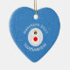 Angel with chrysanthemums for eyes, dressed in the flag of Japan on this heart shaped ceramic ornament for holiday and Hanukkah decor, designed for families with multiple religions. The Japanese flag Hanukkah angel flies inside a white circle of squiggly squares. Add your own text or personalize with a name and customize with the year.