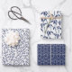 Classic Japanese art inspired Christmas and holidays wrapping paper featuring an elegant illustration japanese wave and bamboo in white and blue palette