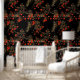 Japanese Birds and Blossoms on Black Wallpaper