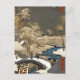 Vintage fine art painting in winter colours depicting an old village and bridge in the snow.