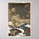 Vintage fine art painting in winter colours depicting an old village and bridge in the snow.