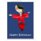 Japanese birthday ! From an original cartoon illustration by artist Zoe Tuong of a Japanese cute doll dressed in traditional red kimono costume. This cute Asian influenced art style from Japan illustration is colourful and the background colour can be changed to suit your taste.