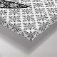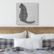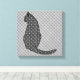 Mixed media digital graphic wrapped canvas of a Japanese inspired sitting cat, in a stylised floral, against a kimono print background - Black and white with shades of silver grey / grey