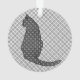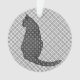 Mixed media digital graphic of a Japanese inspired sitting cat, in a stylised floral, against a kimono print background - Black and white with shades of silver grey / grey