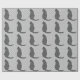 Mixed media digital graphic of a Japanese inspired sitting cat, in a stylised floral, against a kimono print background - Black and white with shades of silver grey / grey