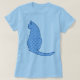 Mixed media digital graphic of a Japanese inspired sitting cat, in a stylised kimono floral - Soft sky blue, dark cobalt blue and white, accented with dark blue