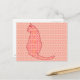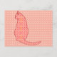 Mixed media digital graphic of a Japanese inspired sitting cat, in a batik pattern, against a kimono print background - Coral orange, soft peach, coral pink, accented with deep rust red