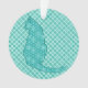 Mixed media digital graphic of a Japanese inspired sitting cat, in a traditional asanoha pattern, against a patterned background - Turquoise / peacock and aqua, accented with dark teal