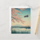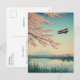 Japanese Cherry Blossom Biplane Airplane Aviation Holiday Postcard