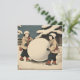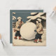 Japanese children are rolling a large snowball—a vintage woodcut piece of art by Canva AI and Alma Wad, the human designer. This printed square flat card has a happy vintage feel, featuring an exotic winter scene. The reserve side is solid blue. Personalise it now with the details of your event or announcement.