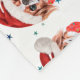 Japanese Chin Dog Breed Christmas Stars features a watercolor of a Japanese Chin with a red Santa's Hat and a red Christmas scarf.