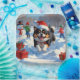 A charming Japanese Chin runs through the snowy winter scene, wearing a festive red Christmas hat. With its silky coat and elegant personality, this joyful design captures the breed’s unique beauty while celebrating the warmth and spirit of the holiday season. A delightful winter moment full of festive charm.