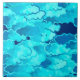 Modern take on a traditional Japanese cloud pattern ceramic tile - stylised clouds in silky gradients of aqua, teal blue, and turquoise, accented with glimpses of dark indigo blue evening sky