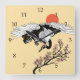 Japanese crane with branch of blooming sakura and red sun. Illustration. Feng Shui theme