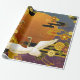 Japanese crane bird colourful sky illustration pat wrapping paper