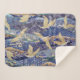 Cranes are symbols of happiness, balance, longevity and eternal youth throughout Asia. This detail of a Japanese tapestry shows flying cranes over water, in tones of ochre (simulating gold) and blues. Customize to your liking!