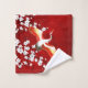 Japanese Crane White Cherry Blossom Red Wash Cloth