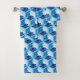 Japanese Cranes, Navy, White, and Light Blue Bath Towel Set