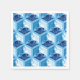 Paper napkins in a classic Japanese kimono pattern of stylised cranes, arranged in a pattern of hexagons, in navy / indigo blue, medium blue, and white, on a light sky blue background